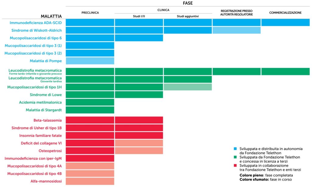 La talassemia è una delle malattie ereditarie più frequenti, specialmente nel bacino del Mediterraneo. Lo standard di cura disponibile per questi pazienti è la trasfusione (a cui il paziente deve sottoporsi regolarmente, assumendo contemporaneamente farmaci per prevenire gli effetti tossici dell'accumulo di ferro); il trapianto allogenico è un’alternativa consolidata ma non sempre possibile per tutti i pazienti e correlato a una serie di rischi. Grazie alle ricerche condotte presso l'Istituto San Raffaele-Telethon di Milano, nel 2015 è stata avviata una sperimentazione clinica che ha coinvolto i pazienti, adulti e bambini, con un difetto ereditario dell'emoglobina. Lo studio si è concluso e i pazienti continuano ad essere seguiti per monitorare la sicurezza ed efficacia a lungo termine della terapia, come previsto dalla normativa vigente. Come continuazione della medesima linea di ricerca, è in programma un secondo studio di terapia genica che si basa su un migliorato processo di produzione del farmaco sperimentale.